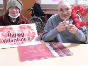 特養みやざわ苑のバレンタインデーは性別に関係なく、みんなでチョコレートムースをいただきました(=゚ω゚)ノ🍫✨